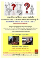 ท่ามกลางสภาพแวดล้อมในการทำงานที่เปลี่ยนแปลงรวดเร็วและมีความซับซ้อนมากยิ่งขึ้นในปัจจุบัน การคิดหาหนทางแก้ปัญหาที่ดีที่สุดนั้นมีความจำเป็นที่ต้องใช้ท...